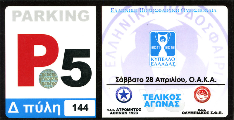 Στις 28 Απριλίου του 2012 η εταιρεία μας, ανέλαβε την διαχείριση κυκλοφορίας, την χωροθέτηση των αυτοκινήτων και προσέφερε Υπηρεσίες Διευκόλυνσης Στάθμευσης στον Τελικό Κυπέλου μεταξύ Ατρόμητου Αθηνών και Ολυμπιακού Σ.Φ.Π. στο Ο.Α.Κ.Α.